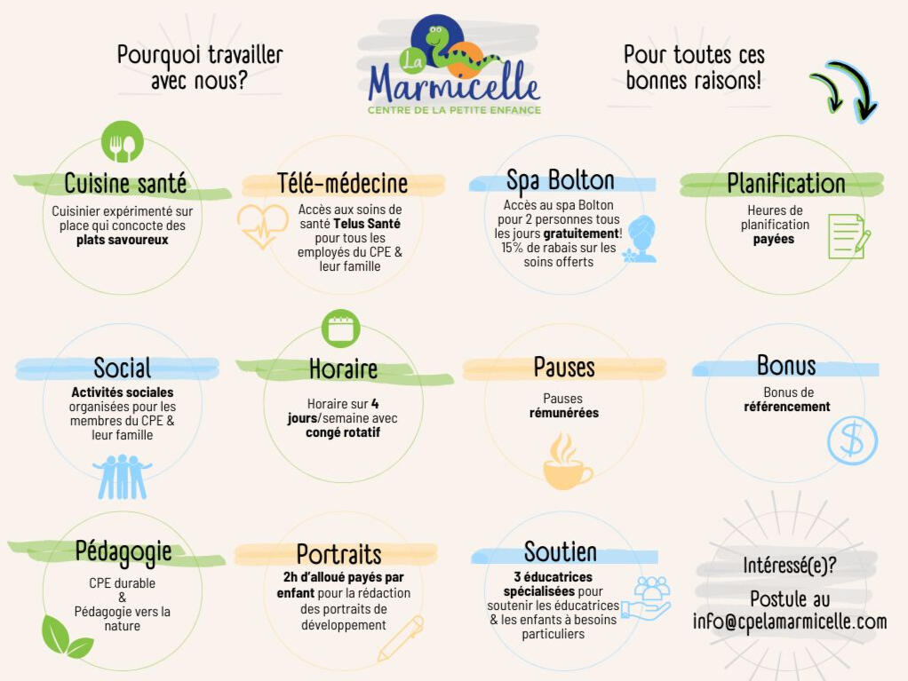 « Éducatrice au CPE La Marmicelle depuis son ouverture il y a 25 ans, j’accompagne avec bienveillance les tout-petits dans leur développement. Ce milieu est devenu au fil des ans ma deuxième famille, un endroit où je me sens appréciée et épanouie. Être éducatrice est un métier précieux et gratifiant. »Sarah